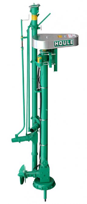 Способ перемешивания, гомогенизации: механический - винтом или гидромеханический, дополнительно струёй жидкости из напорного сопла (опция) с управляемым положением. Насос эксплуатируется в стационарном положении (вертикальном или наклонном) после монтажа в накопителе.